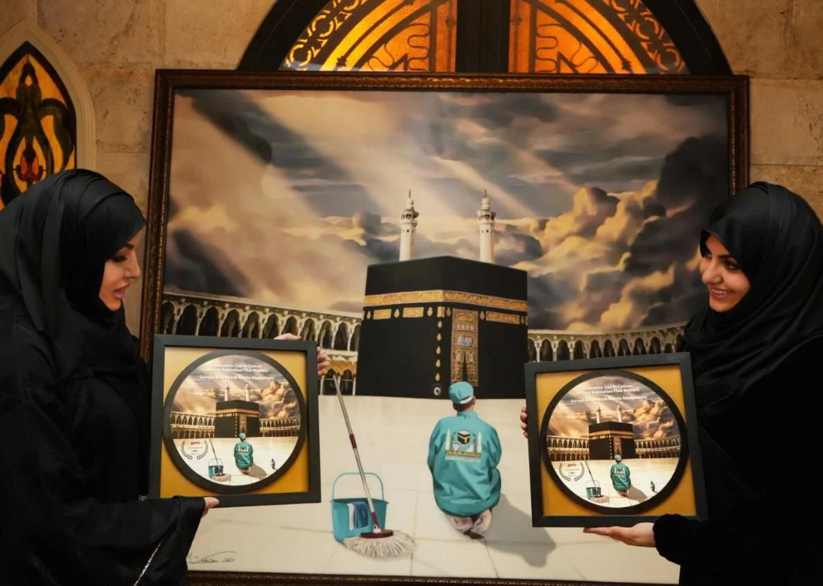 Suraya AlShehry and Nabila Abuljadayel with the inspired painting.